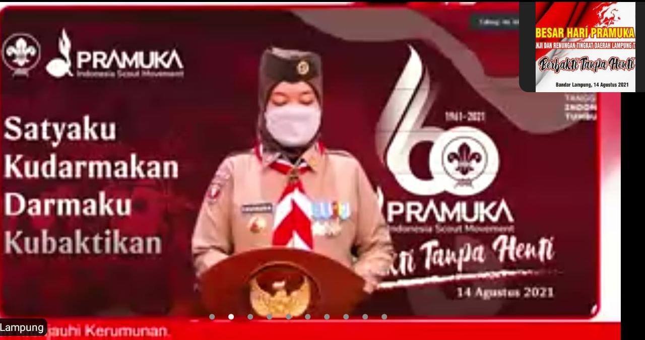Hal tersebut disampaikan Ketua Kwarda Lampung Kak Chusnunia saat menjadi Irup Apel Besar Hari Pramuka ke-60 Tahun 2021 Tingkat Daerah Lampung secara virtual, Sabtu (14/8) malam.